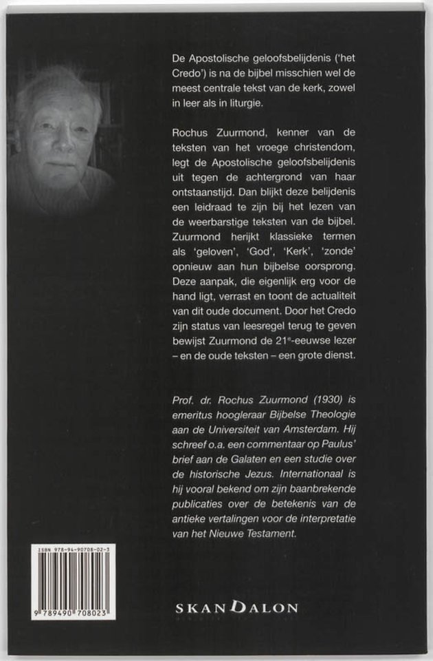 De Apostolische geloofsbelijdenis ('het Credo') is na de bijbel misschien wel de meest centrale tekst van de kerk, zowel in leer als in liturgie. Rochus Zuurmond, kenner van de teksten van het vroege christendom, legt de Apostolische geloofsbelijdenis uit tegen de achtergrond van haar ontstaanstijd. Dan blijkt deze belijdenis een leidraad te zijn bij het lezen van de weerbarstige teksten van de bijbel.
