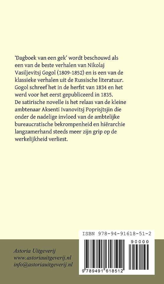 'Dagboek van een gek' wordt beschouwd als een van de beste verhalen van Nikolaj Vasiljevitsj Gogol (1809-1852) en is een van de klassieke verhalen uit de Russische literatuur. Gogol schreef het in de herfst van 1834 en het werd voor het eerst gepubliceerd in 1835.