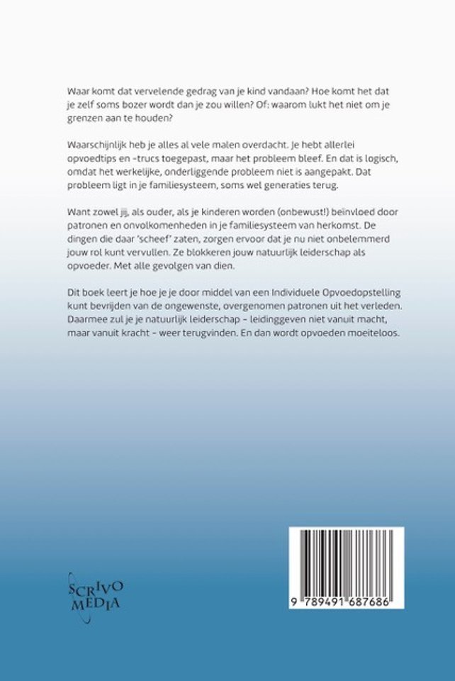 Dit boek leert je hoe je je door middel van een Individuele Opvoedopstelling kunt bevrijden van de ongewenste, overgenomen patronen uit het verleden. Daarmee zul je je natuurlijk leiderschap - leidinggeven niet vanuit macht, maar vanuit kracht - weer terugvinden. En dan wordt opvoeden moeiteloos.