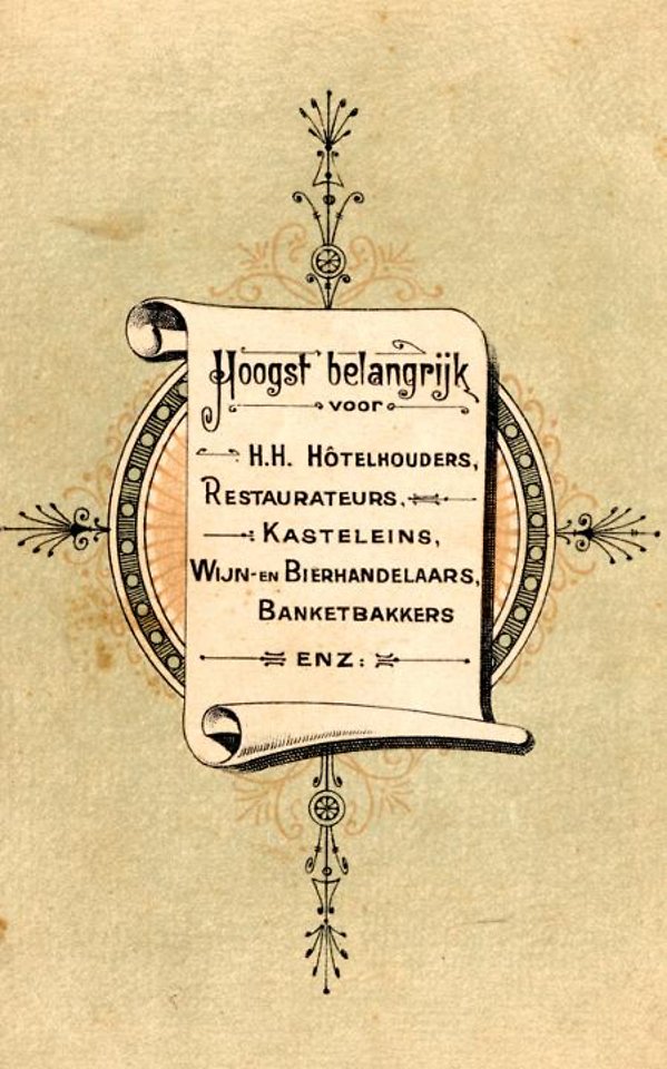 François Blom cuisinier te s-Hage is vermaard om de keur recepten in Moderne kookkunst.