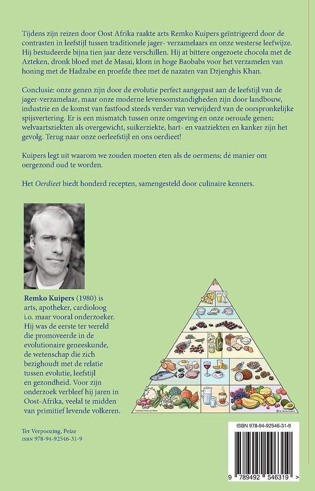 De simpele conclusie: onze genen zijn door evolutie perfect aangepast aan de leefstijl van de jager-verzamelaar, maar onze huidige leefstijl is door landbouw, industrialisatie, de komst van fastfood, social media en elektrische fietsen waarop zelfs kinderen zich al voortbewegen heel ver af komen te staan van onze oerleefstijl. Deze mismatch tussen onze oeroude genen en onze huidige leefomstandigheden resulteren in welvaartsziekten als overgewicht, suikerziekte, hart- en vaatziekten. Om weer gezomd oud te worden moeten we terug naar onze oerleefstijl en ons oerdieet! In dit boek legt Kuipers op wetenschappelijk onderbouwde manier uit waarom en hoe we kunnen leven als moderne oermensen.