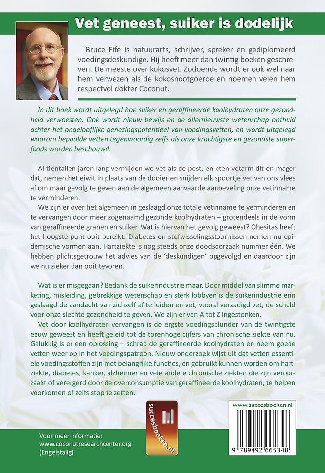 In dit boek wordt uitgelegd hoe suiker en geraffineerde koolhydraten onze gezondheid verwoesten. Ook wordt nieuw bewijs en de allernieuwste wetenschap onthuld achter het ongelooflijke genezingspotentieel van voedingsvetten, en wordt uitgelegd waarom bepaalde vetten tegenwoordig zelfs als onze krachtigste en gezondste superfoods worden beschouwd.