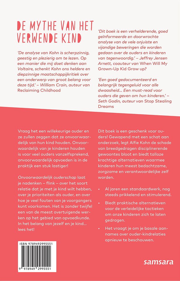 In De mythe van het verwende kind ontkracht Alfie Kohn systematisch deze overtuigingen – niet alleen door uitdagende onjuiste beweringen aan de kaak te stellen, maar ook de verontrustende ideologie blootleggend die eraan ten grondslag ligt. Klachten over veeleisende ouders en verwende kinderen zijn nauwelijks nieuw. Hij laat zien dat daarvoor geen bewijs is, laat staan dat het vaker voorkomt dan in vorige generaties. De belangrijkste bedreiging voor de ontwikkeling van een gezond kind wordt gevormd door opvoeding die te controlerend is in plaats van te toegeeflijk.