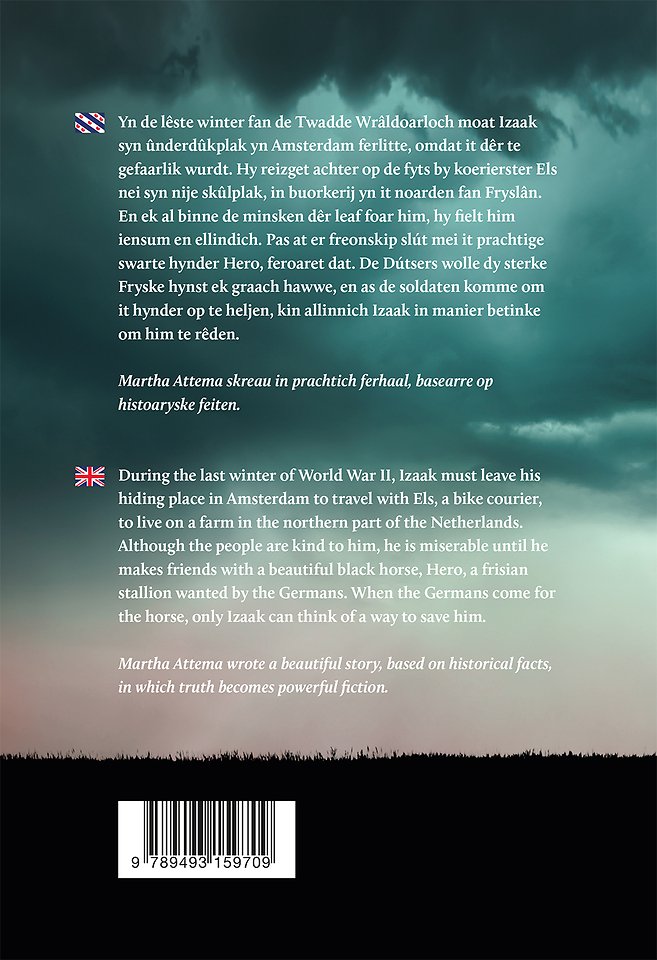 Yn de lêste winter fan de Twadde Wrâldoarloch moat Izaak syn ûnderdûkplak yn Amsterdam ferlitte, omdat it dêr te gefaarlik wurdt. Hy reizget achter op de fyts by koerierster Els nei syn nije skûlplak, in buorkerij yn it noarden fan Fryslân. En ek al binne de minsken dêr leaf foar him, hy fielt him iensum en ellindich. Pas at er freonskip slút mei it prachtige swarte hynder Hero, feroaret dat. De Dútsers wolle dy sterke Fryske hynst ek graach hawwe, en as de soldaten komme om it hynder op te heljen, kin allinnich Izaak in manier betinke om him te rêden.