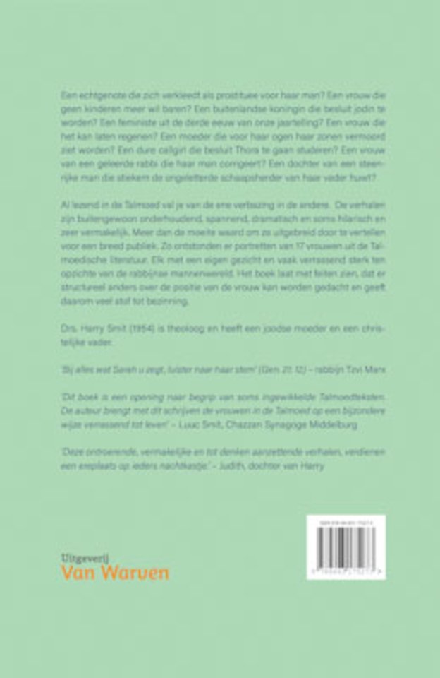 Al lezend in de Talmoed val je van de ene verbazing in de andere. De verhalen zijn buitengewoon onderhoudend, spannend, dramatisch en soms hilarisch en zeer vermakelijk. Meer dan de moeite waard om ze uitgebreid door te vertellen voor een breed publiek. Zo ontstonden er in Coronatijd portretten van 17 vrouwen uit de Talmoedische Literatuur. Elk met een eigen gezicht en vaak verrassend sterk ten opzichte van de rabbijnse mannenwereld. Het boek laat met feiten zien, dat er structureel anders over de positie van de vrouw kan worden gedacht en geeft daarom veel stof tot bezinning.