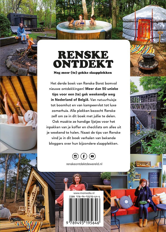 Het derde boek van Renske Borst staat bomvol nieuwe ontdekkingen! Meer dan 50 unieke tips voor een (te) gek weekendje weg in Nederland of België. Van natuurhuisje tot boomhut en van kampeervlot tot luxe zomerhuis. Alle plekken bezocht Renske zelf om ze in dit boek met jullie te delen. Ook maakte ze handige lijstjes voor het inpakken van je koffer en checklists om alles uit je weekend te halen. Naast de tips van Renske vind je in dit boek verhalen van bekende bloggers over hun bijzondere slaapplekken.
