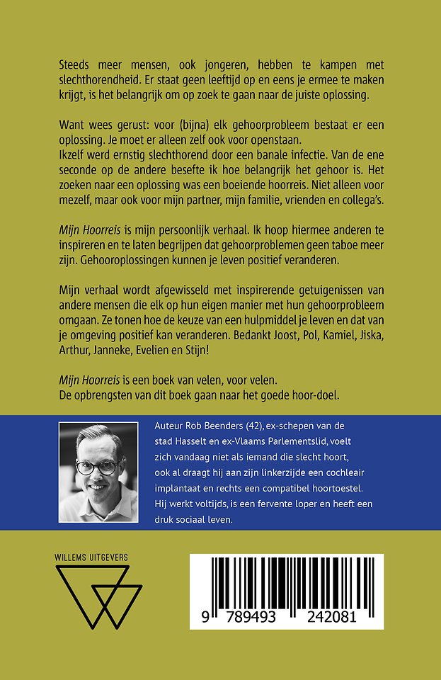 Auteur Rob Beenders (42), ex-schepen van de stad Hasselt en ex-Vlaams Parlementslid, voelt zich vandaag niet als iemand die slecht hoort, ook al draagt hij aan zijn linkerzijde een cochleair implantaat en rechts een compatibel hoortoestel.