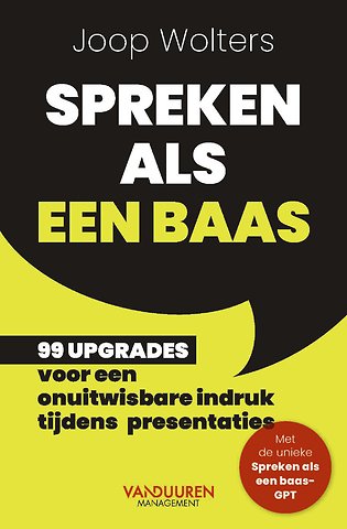 En last but not least: Je krijgt bij dit boek ook direct toegang tot de Spreken als een Baas GPT, jouw digitale sprekerscoach en de digitale evenknie van Joop Wolters, de trainer die duizenden mensen hielp om het (spreekwoordelijke) podium te pakken. De Spreken als een baas GPT analyseert jouw spreekstijl, geeft je direct persoonlijke upgrades én wijst je de weg in het boek: binnen twee minuten heb je je persoonlijke leerroute. Niet meer eindeloos zoeken naar de voor jou beste upgrades, maar gewoon lezen wat jij nú nodig hebt.
