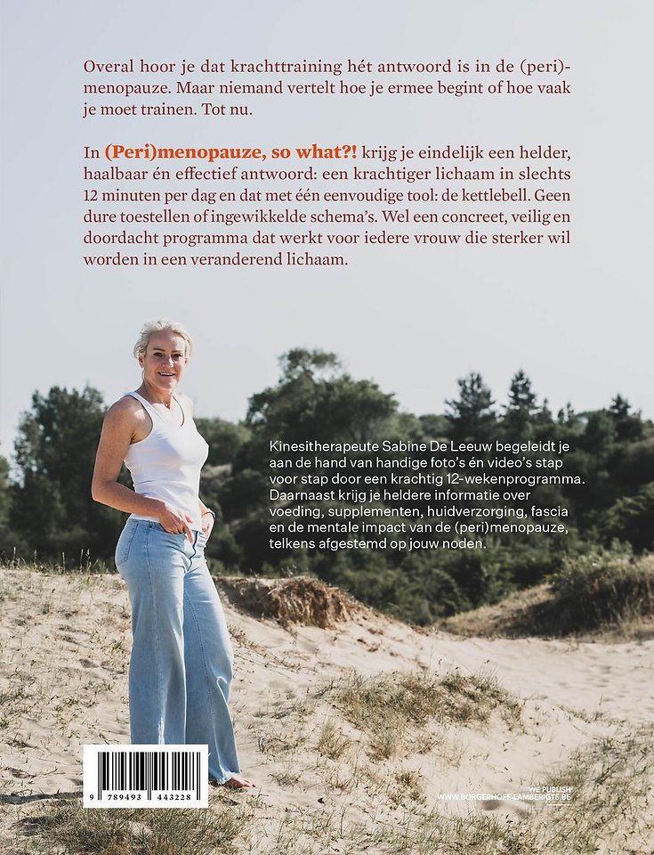In (Peri)menopauze, so what?! krijg je eindelijk een helder, haalbaar én effectief antwoord: een krachtiger lichaam in slechts 12 minuten per dag en dat met één eenvoudige tool: de kettlebell. Geen dure toestellen of ingewikkelde schema's. Wel een concreet, veilig en doordacht programma dat werkt voor iedere vrouw die sterker wil worden in een veranderend lichaam.