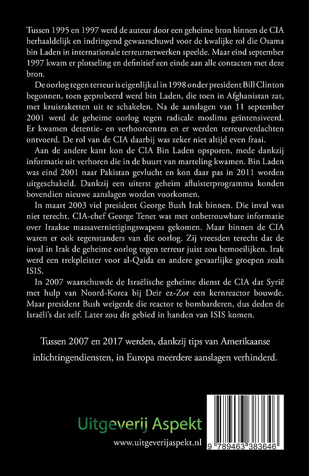 Tussen 1995 en 1997 werd de auteur door een geheime bron binnen de CIA herhaaldelijk en indringend gewaarschuwd voor de kwalijke rol die Osama bin Laden in internationale terreurnetwerken speelde. Maar eind september 1997 kwam er plotseling en definitief een einde aan alle contacten met deze bron.